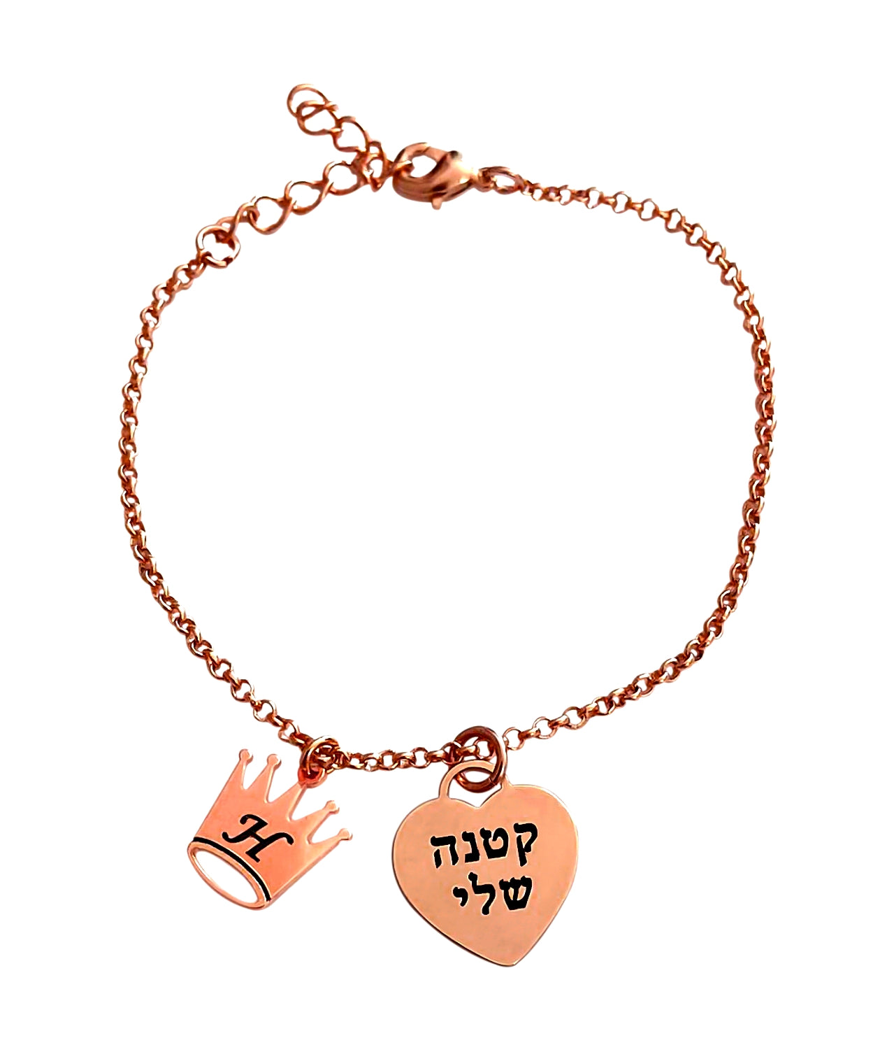 Custom Inscription Bracelet with Crown Charm and Heart Charm